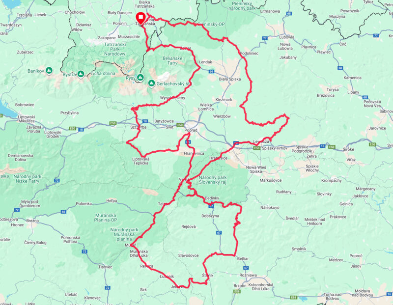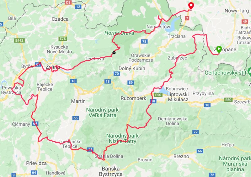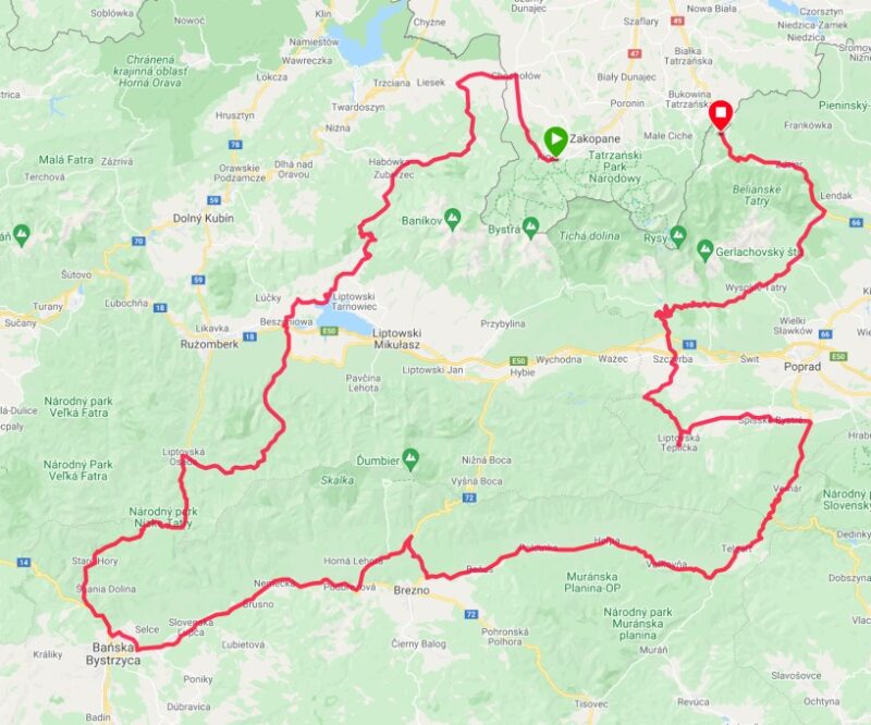 - Krótki opis: Poszerzony wariant objazdu Tatr (trasa 13). Tym razem okrążymy zarówno Tatry Niżne, jak i Wysokie. Przepiękne drogi, wspaniałe widoki – polecam tę trasę